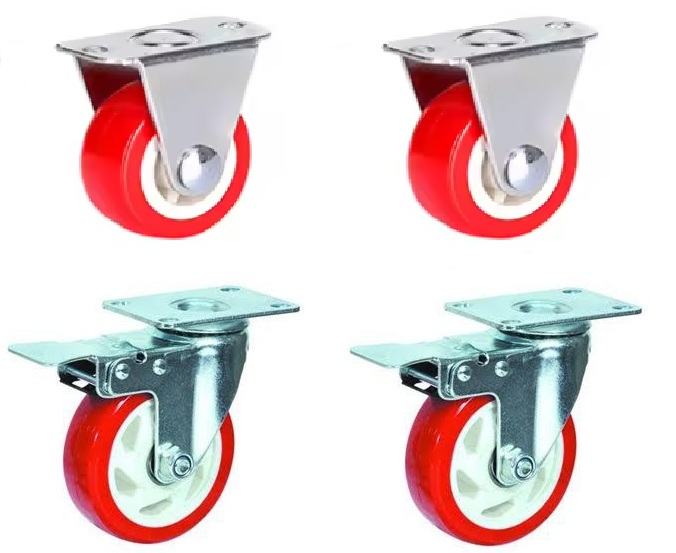 4” x 1.5” 400Kg. Loading Capacity PU Set Of 2 Fixed & 2 Swivel With Brake CastorWheel