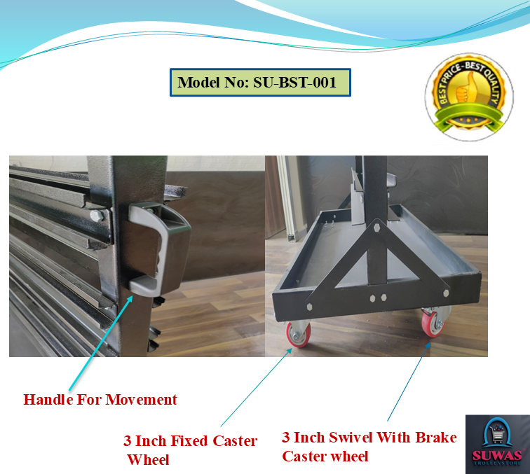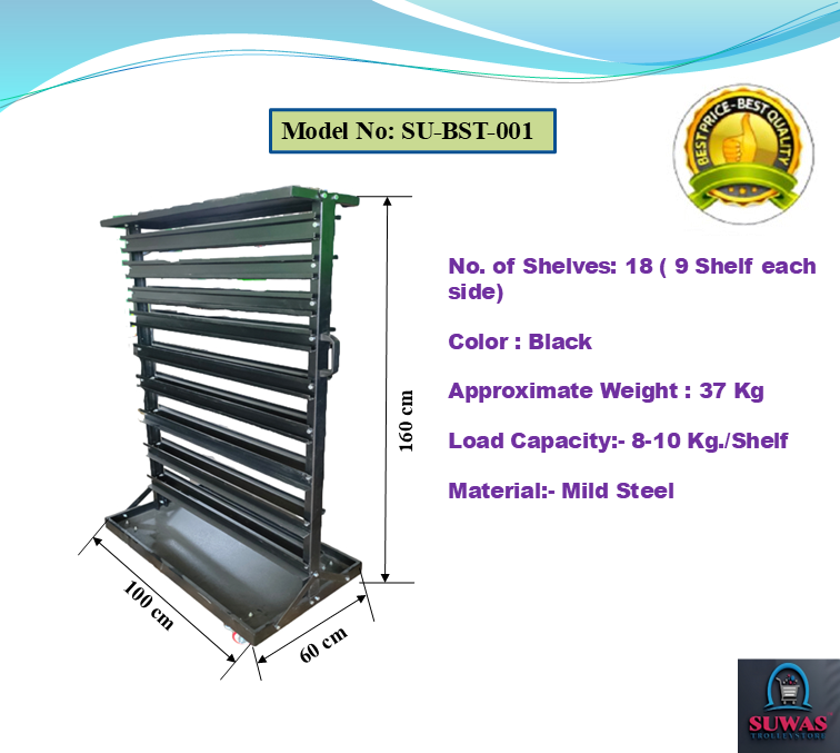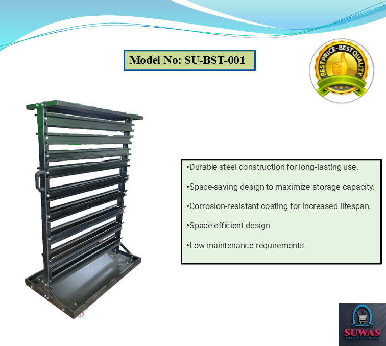 This trolley is made of high grade hot rolled mild steel sheet. This trolley is made for stacking bins. It requires less space as compared to other commercial racks/trolleys. It is easy to assemble & disassemble. Powder coating finish gives lustrous & attractive look.
