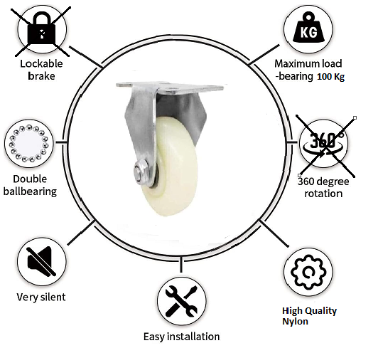 4” x 1.5” 100Kg. Loading Capacity Nylon Fixed Castor Wheel