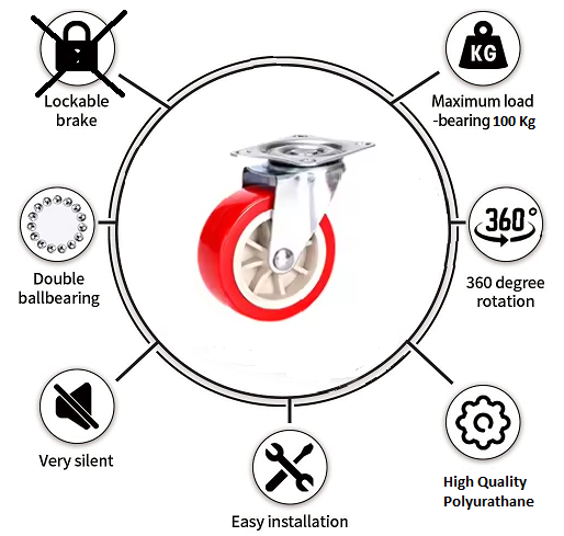 4” x 1.5” 100Kg. Loading Capacity PU Swivel Castor Wheel