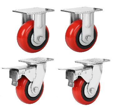 4” x 2” 1200Kg. Loading Capacity PU (Polyurethane) Set Of 2 Fixed & 2 Swivel With Brake Castor Wheel