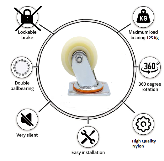 4” x 2” 300Kg. Loading Capacity Nylon Swivel Castor Wheel