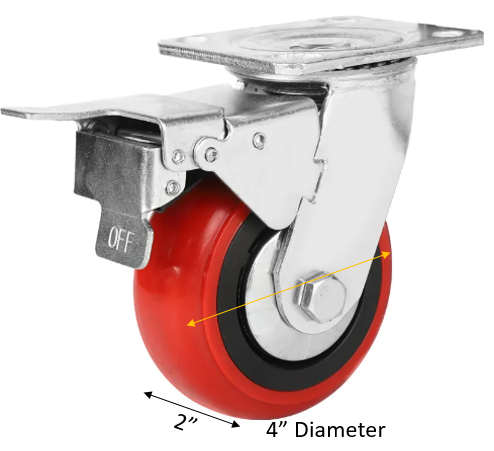 4” x 2” 300Kg. Loading Capacity PU (Polyurethane) Swivel With Brake Castor Wheel