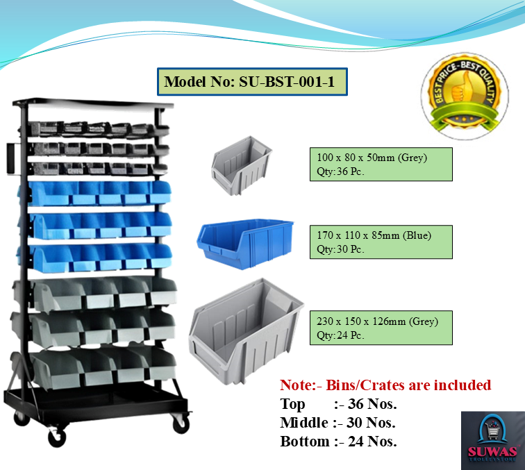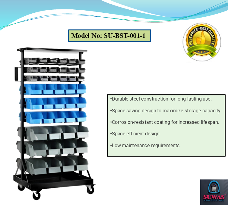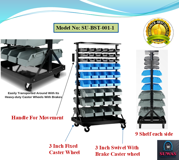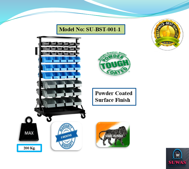 This trolley is made of high grade hot rolled mild steel sheet. This trolley is made for stacking bins. It requires less space as compared to other commercial racks/trolleys. It is easy to assemble & disassemble. Powder coating finish gives lustrous & attractive look.