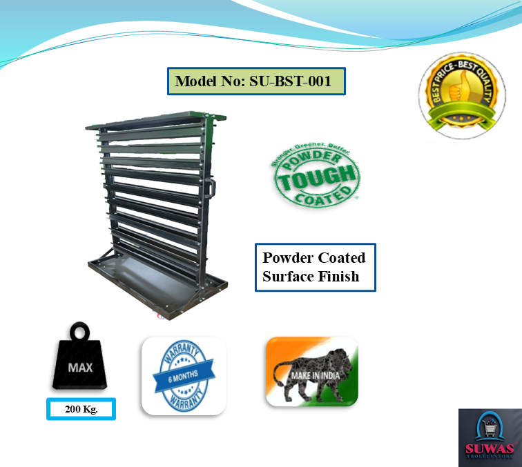 This trolley is made of high grade hot rolled mild steel sheet. This trolley is made for stacking bins. It requires less space as compared to other commercial racks/trolleys. It is easy to assemble & disassemble. Powder coating finish gives lustrous & attractive look.