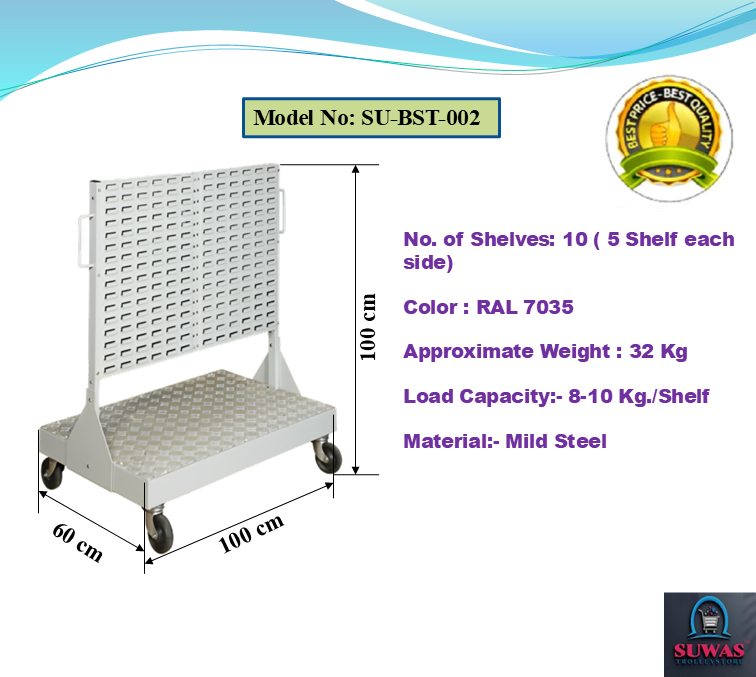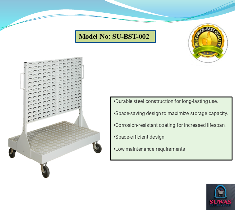 This trolley is made of high grade hot rolled mild steel sheet. This trolley is made for stacking bins. It requires less space as compared to other commercial racks/trolleys. It is easy to assemble & disassemble. Powder coating finish gives lustrous & attractive look.