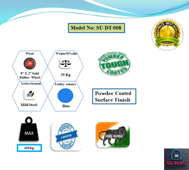 8” x 2” Solid rubber wheel at front & 6” x 2” at rear end |