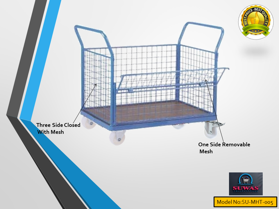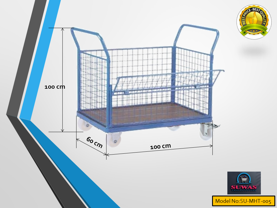 Strong & durable mild steel heavy duty Material Handling Trolley. Trolley engaged with 4” x 2” PP (Polypropylene) fixed Castor wheels at front & swivel with brake castor wheel at rear end for indoor and moderate outdoor easy & safe handling. Tubing and each shelf made of tough steel for added durability.
