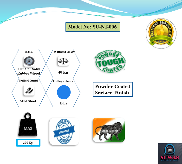 10” x 2” Solid rubber wheel at front 4” x 1” brake wheel at rear end |