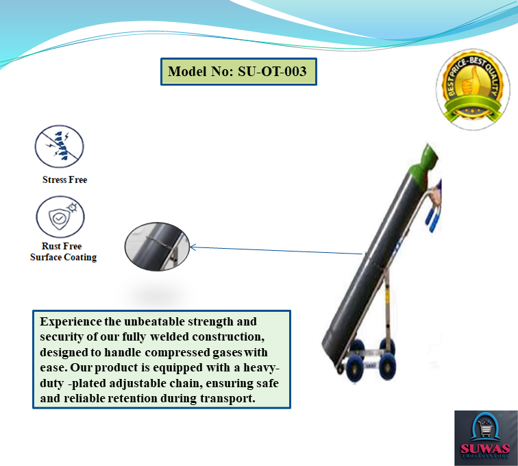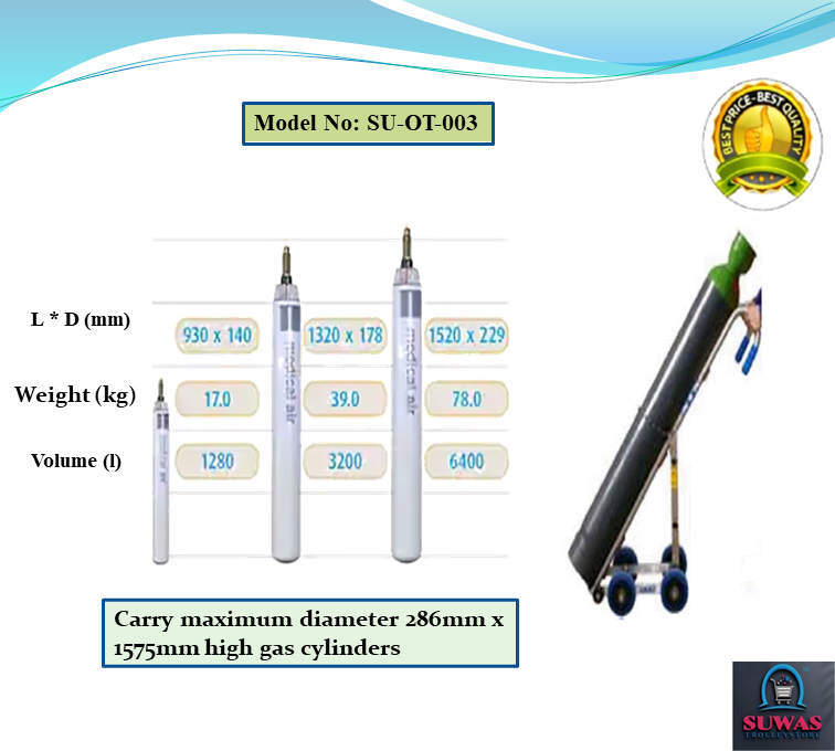 Cylinder trolleys with tubular steel frame designed to carry maximum 286mm diameter x 1575mm high gas cylinders. Gas cylinder trolley frames are fitted with locking chain increased manoeuvrability and stability when in transit.