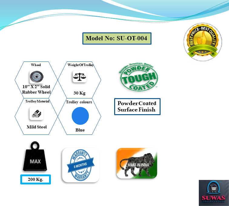 10” x 2” Solid rubber wheel at front 4” x 2” brake wheel at rear end |