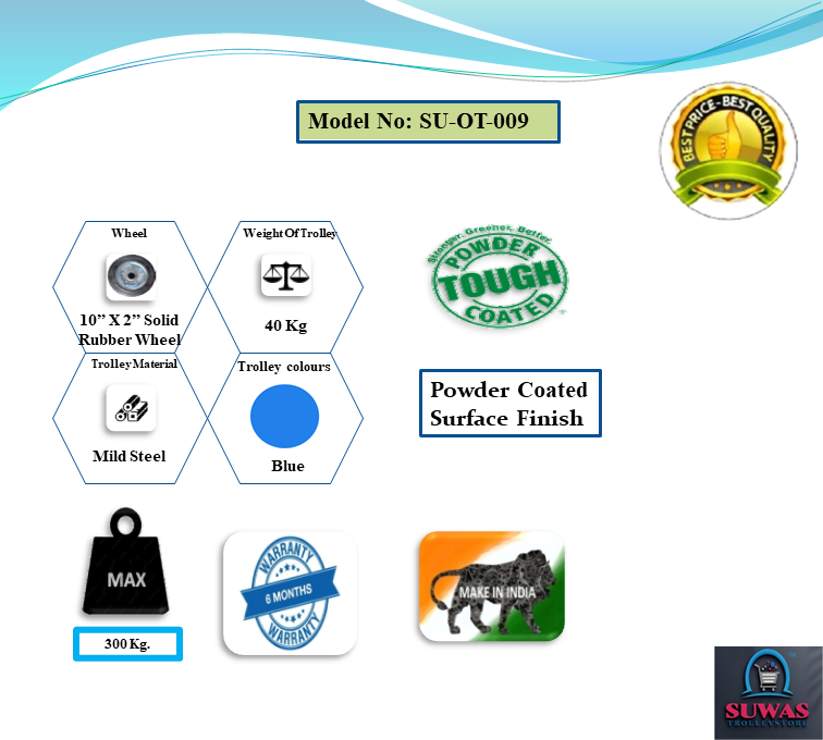 10” x 2” Solid rubber wheel at front 4” x 1” brake wheel at rear end |