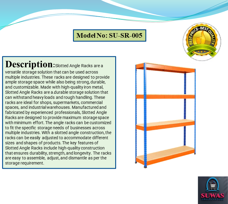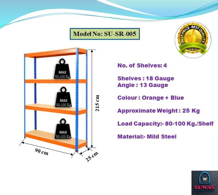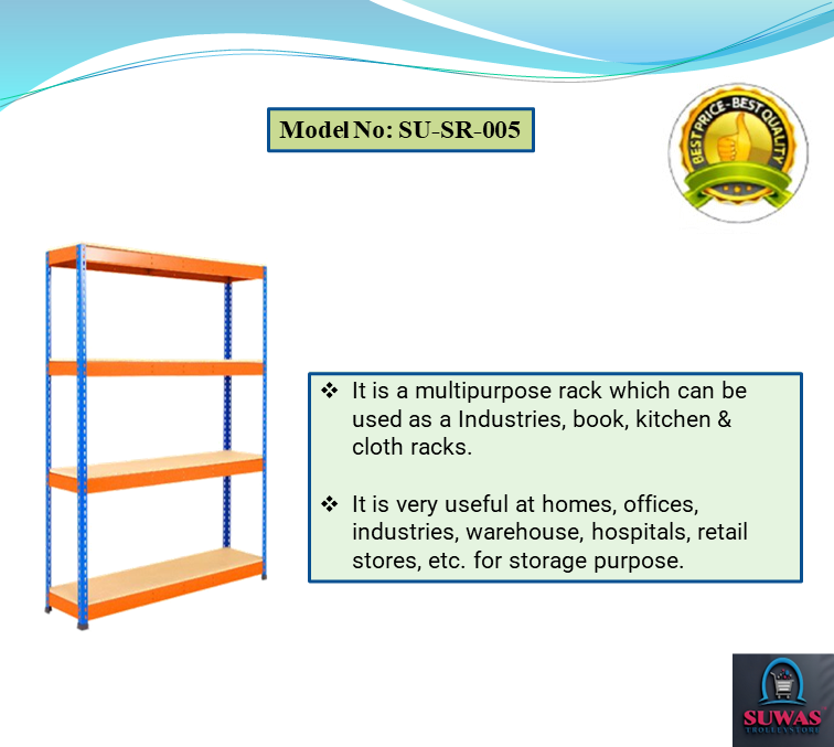 This rack is made of high grade CRC mild steel sheet. This rack having 4 MS angle vertical pillars & each and every panel can be dissemble as per the application. It is easy to assemble & disassemble. Powder coating finish gives lustrous & attractive look.