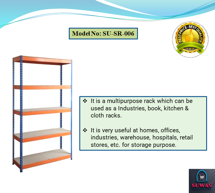 This rack is made of high grade CRC mild steel sheet. This rack having 4 MS angle vertical pillars & each and every panel can be dissemble as per the application. It is easy to assemble & disassemble. Powder coating finish gives lustrous & attractive look.
